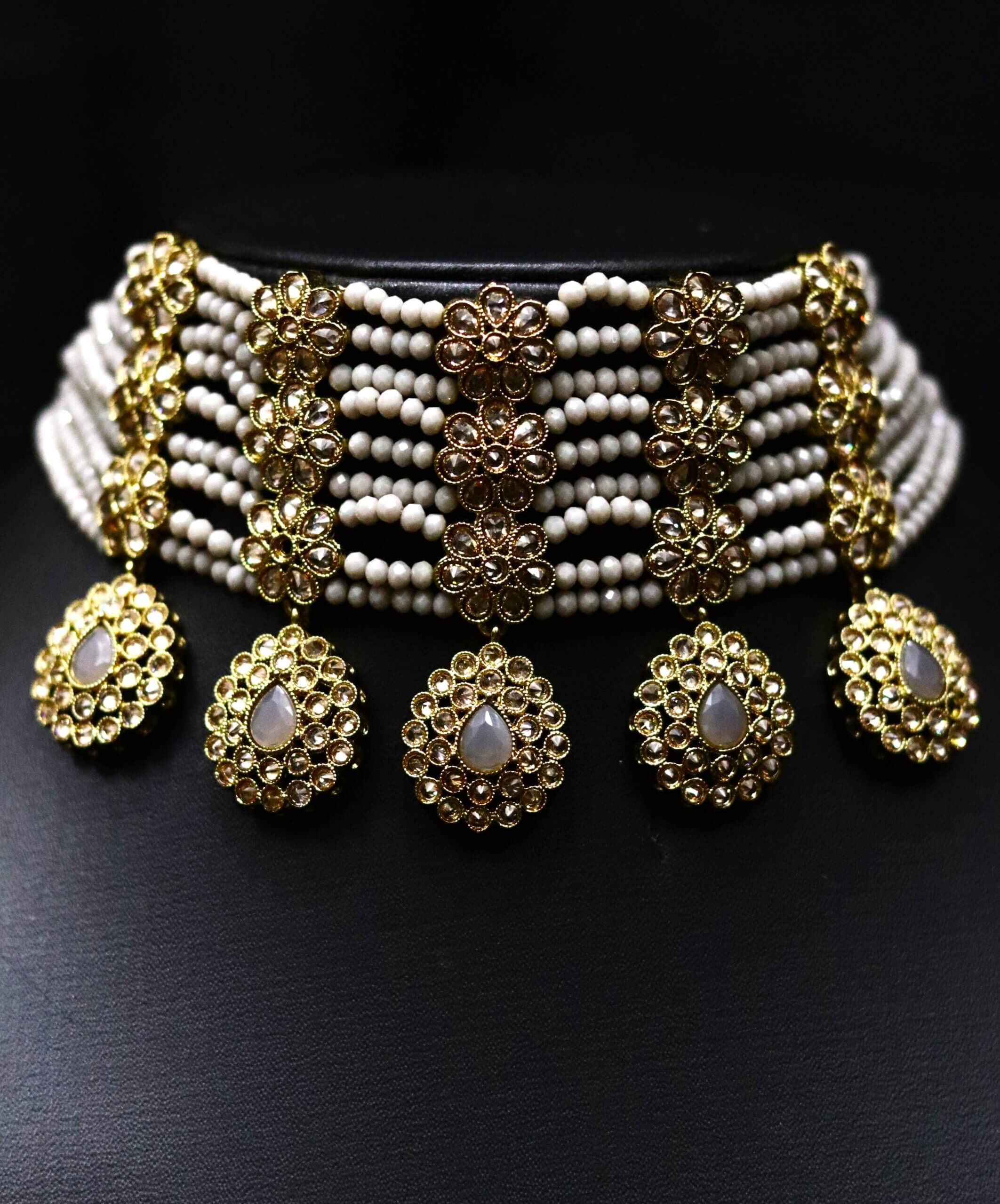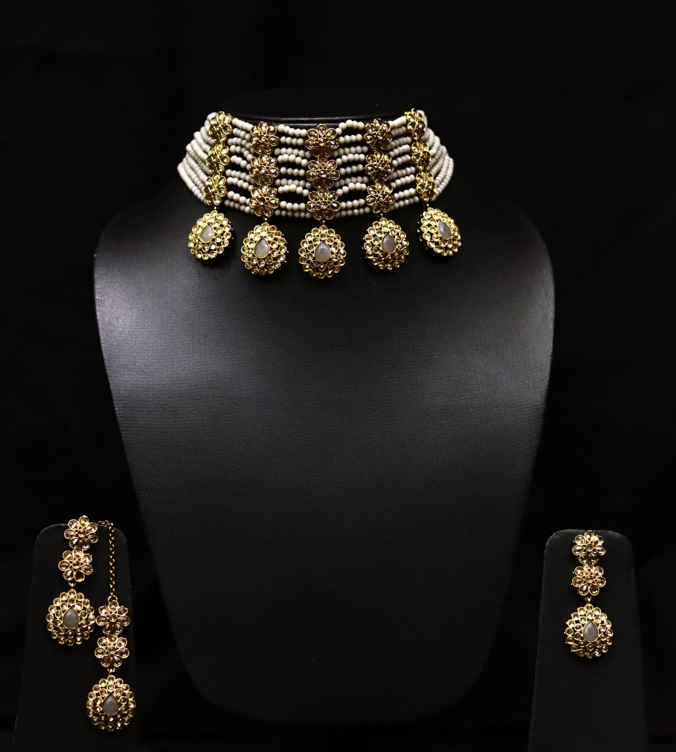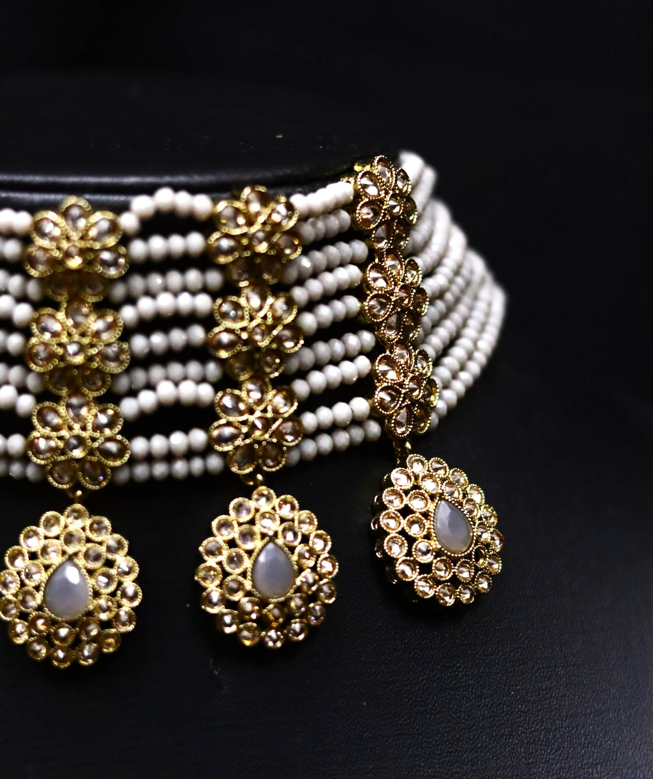 Includes: Choker, matching earrings, maang tikka.